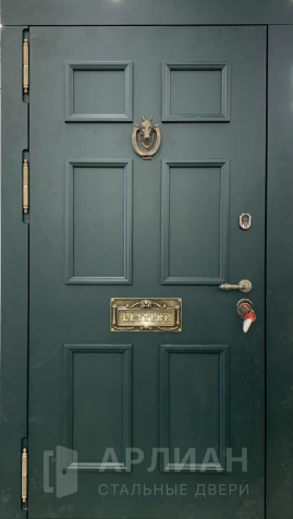 Зеленая дверь отделка МДФ панель с фрамугой входная №22
