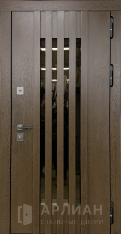 Коричневая входная дубовая дверь с зеркалом №13